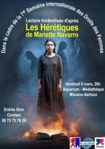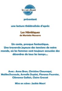 La compagnie présentera une lecture théâtralisée de la pièce Les Hérétiques de Mariette NAVARRO
