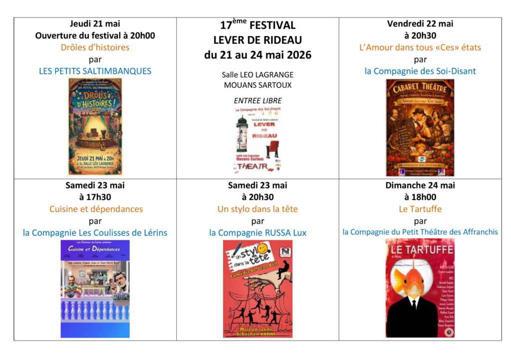 Depuis 2002, la compagnie a crée et organise le festival de théâtre « LEVER DE RIDEAU ».